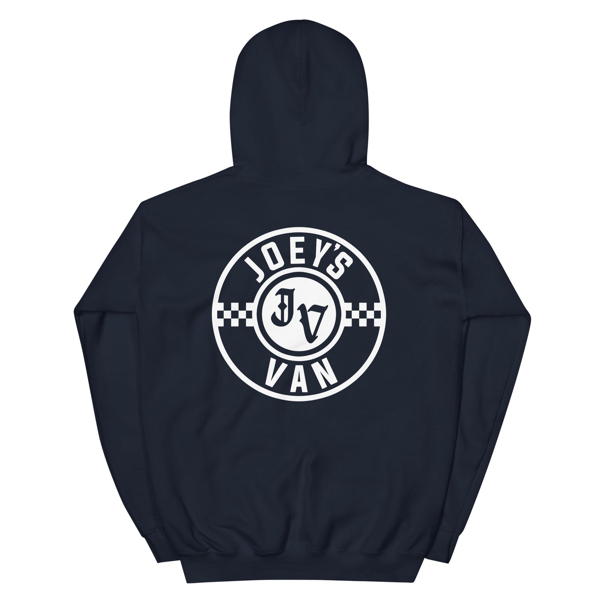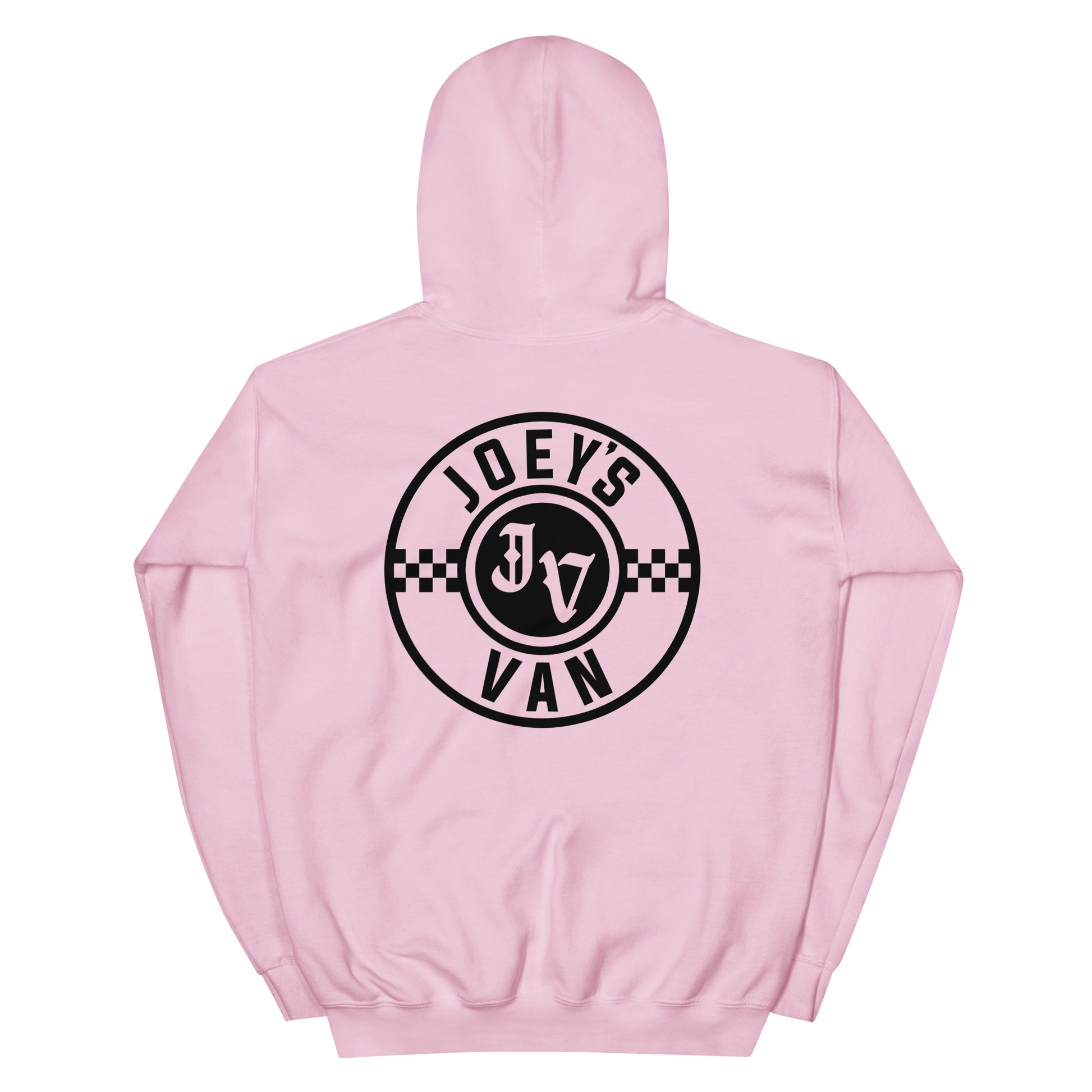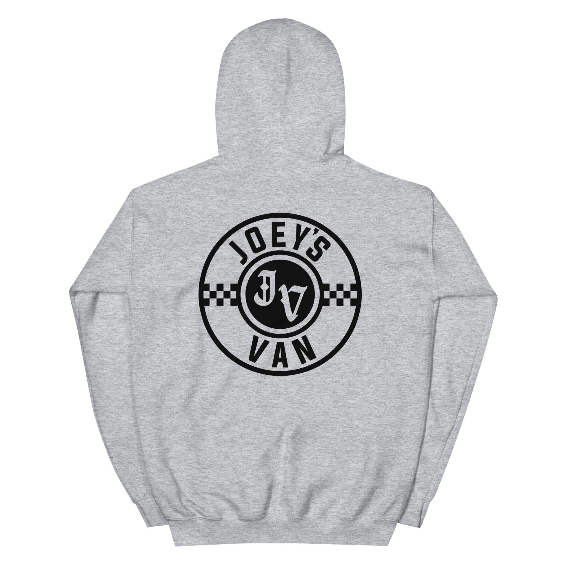 this is a hoodie with part of our logo on the front and the whole thing on the back